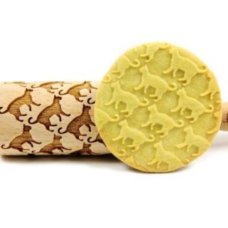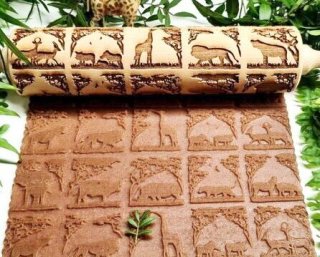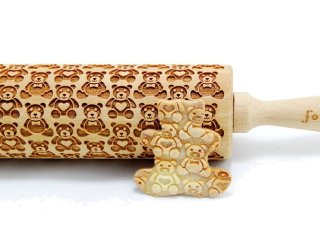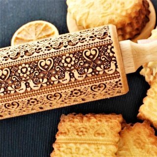 生地にローリングピンを押しあてながら模様をつけていきます。