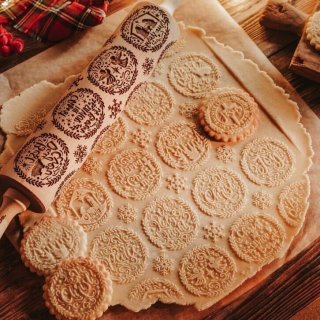生地にローリングピンを押しあてながら模様をつけていきます。
