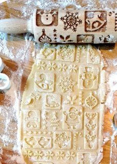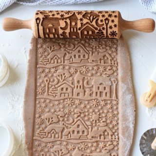 生地にローリングピンを押しあてながら模様をつけていきます。
