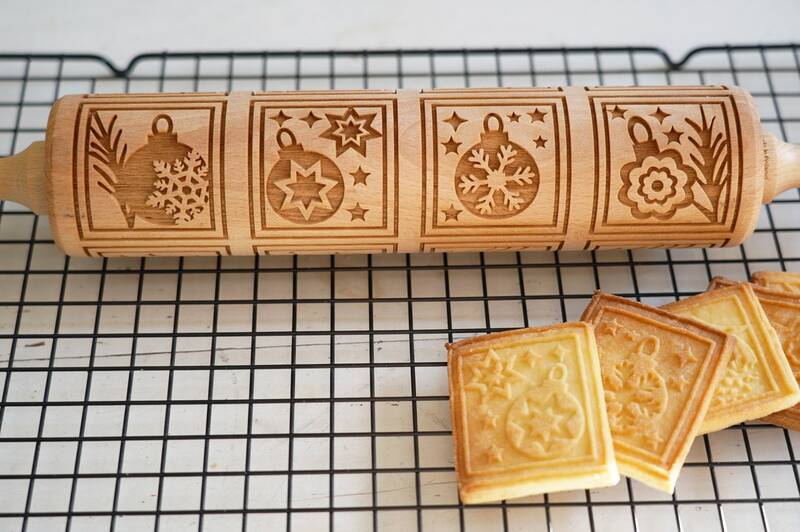 生地にローリングピンを押しあてながら模様をつけていきます。