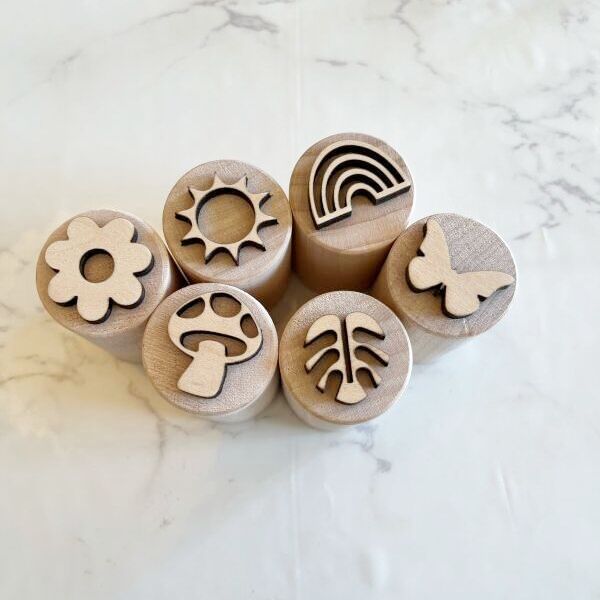 お花*葉っぱ*太陽*レインボー*蝶々*きのこ<6個>*wood cookie stamp