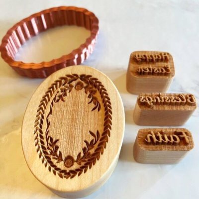 繊細なデザインがとても素敵な木製のクッキースタンプ型です。仕上げにアイシングなどでデコレーションしても素敵です!