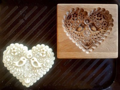 ハートとお花と小鳥*wood gingerbread cookie mold
