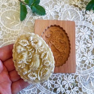 繊細なデザインがとても素敵な木製のクッキースタンプ型です。