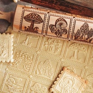 生地にローリングピンを押しあてながら模様をつけていきます。