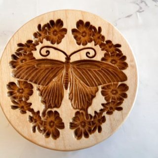 繊細なデザインがとても素敵な木製のクッキースタンプ型です。仕上げにアイシングなどでデコレーションしても素敵です!