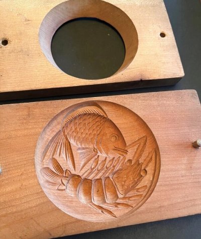 長年、菓子職人さんたちに大事に使われてきた木型達、日本の木型職人さんの彫りは繊細で素晴らしい。