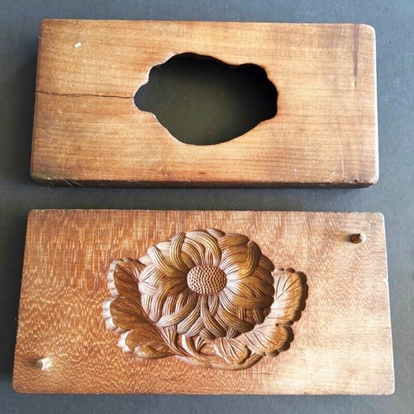 長年、菓子職人さんたちに大事に使われてきた木型達、日本の木型職人さんの彫りは繊細で素晴らしい!!