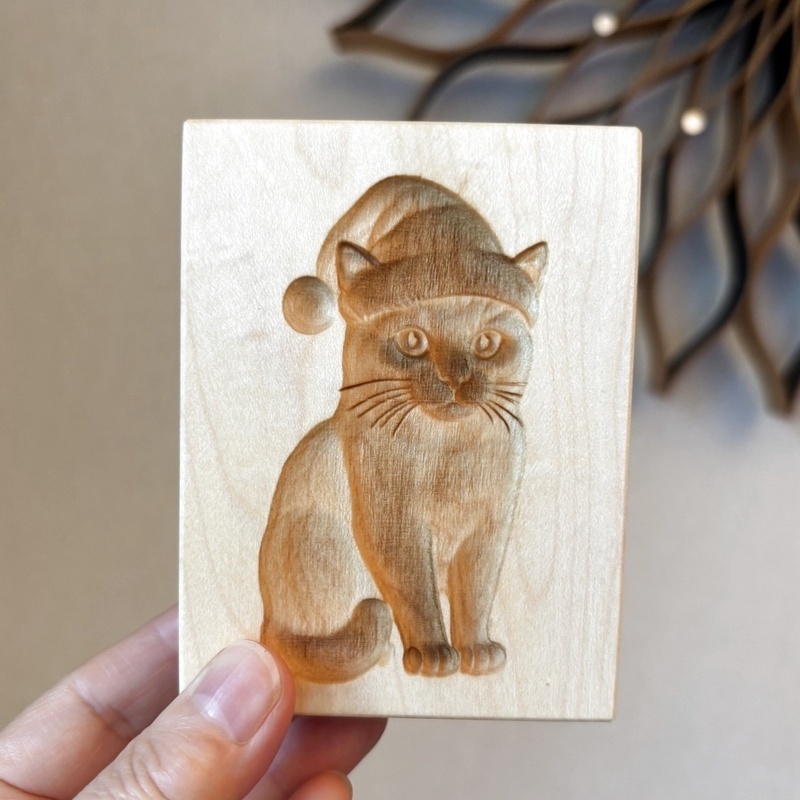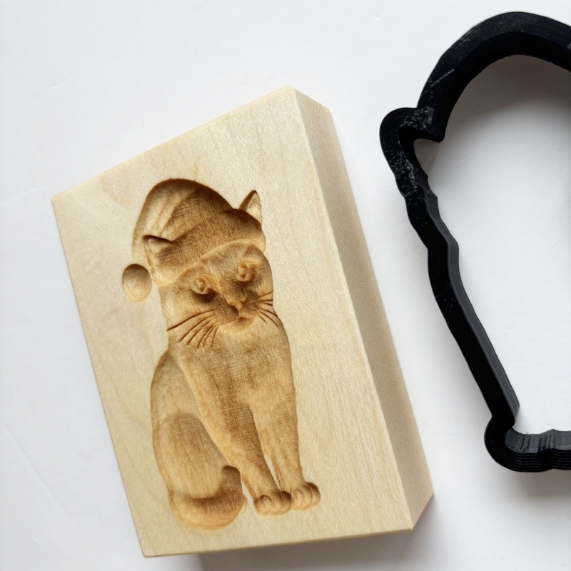 Christmas Kitty / クリスマスキャット+カッター付き/wood cookie mold