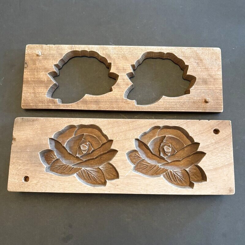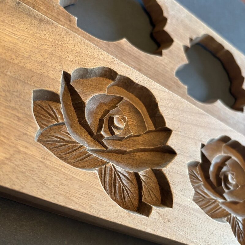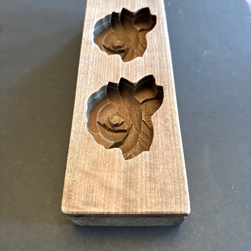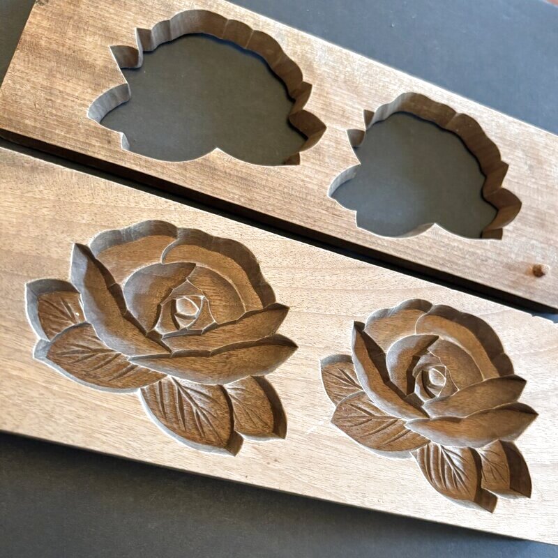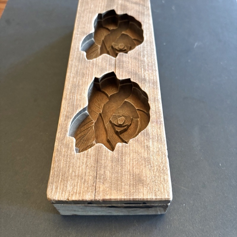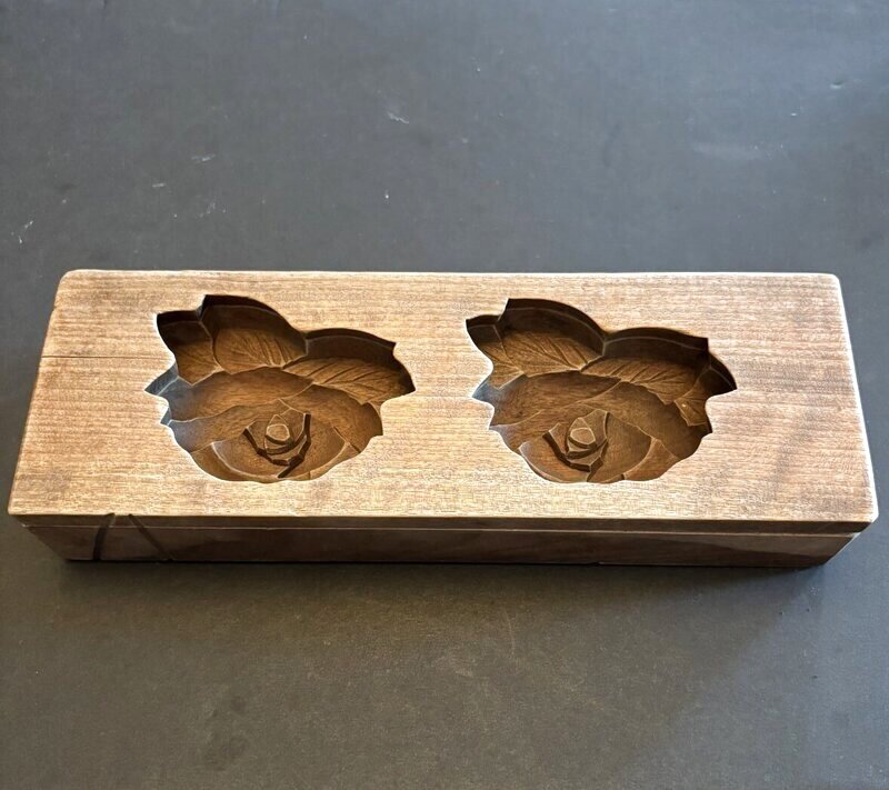 長年、菓子職人さんたちに大事に使われてきた木型達、日本の木型職人さんの彫りは繊細で素晴らしい。