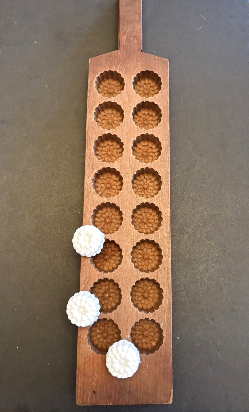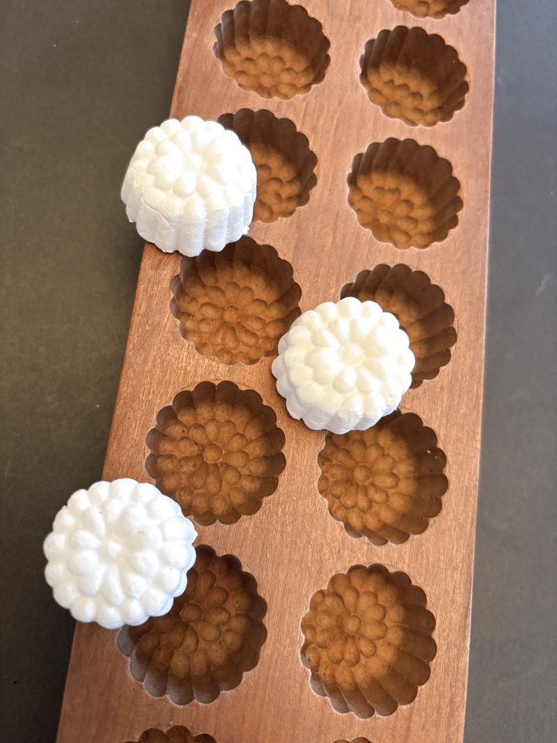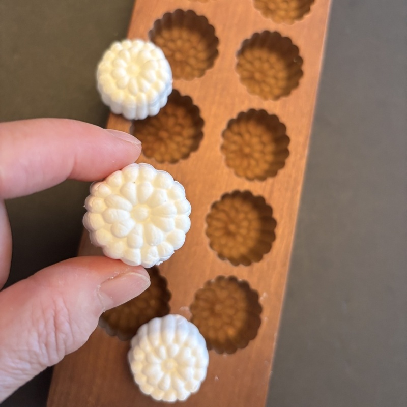 長年、菓子職人さんたちに大事に使われてきた木型達、日本の木型職人さんの彫りは繊細で素晴らしい。