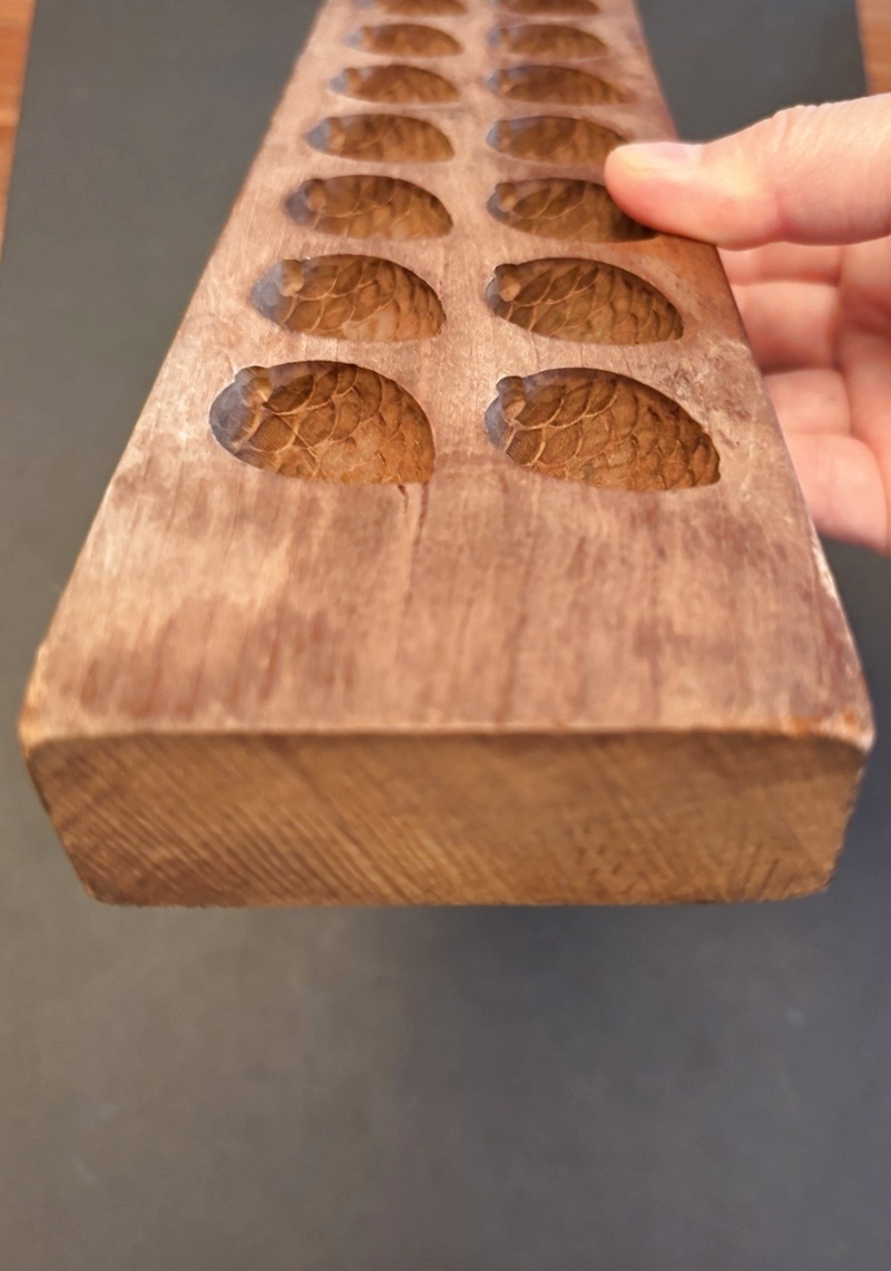 長年、菓子職人さんたちに大事に使われてきた木型達、日本の木型職人さんの彫りは繊細で素晴らしい。