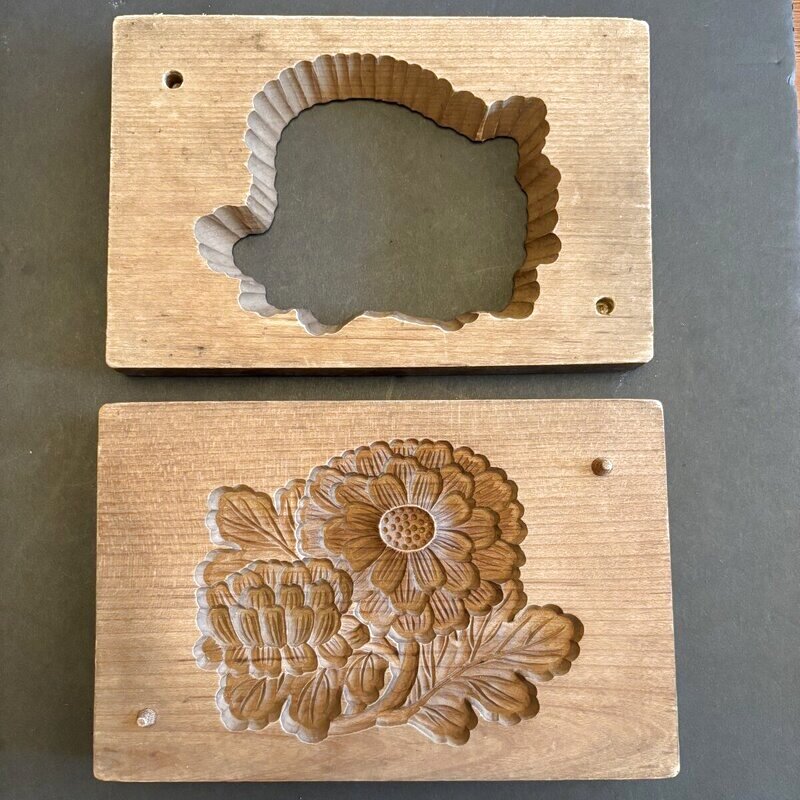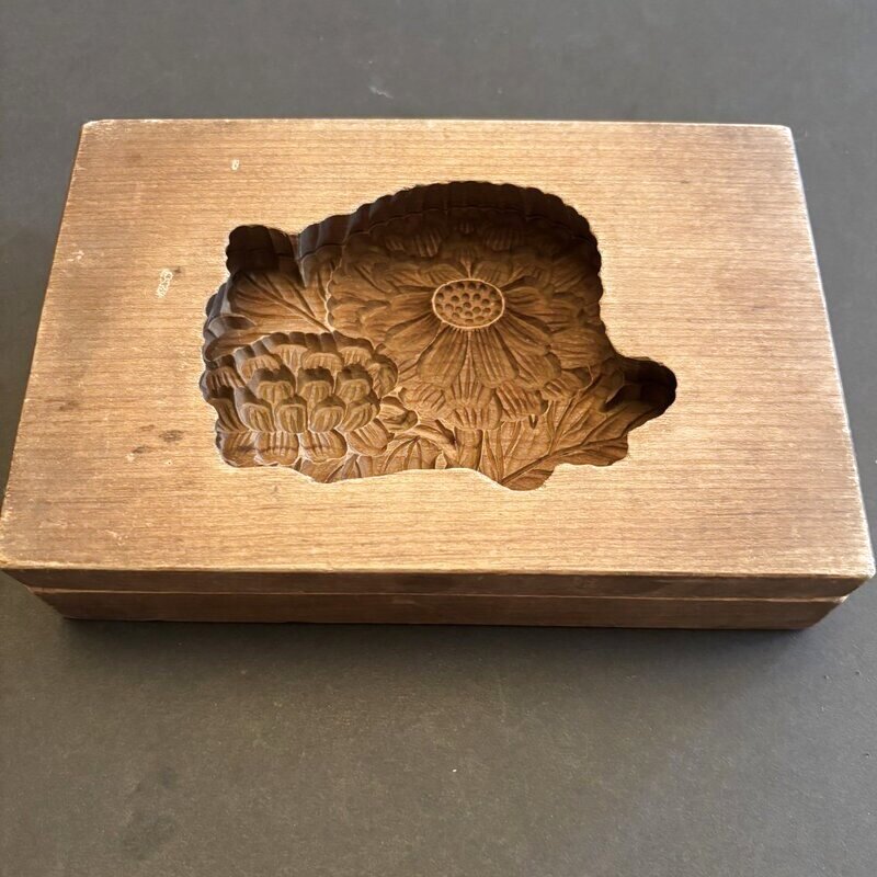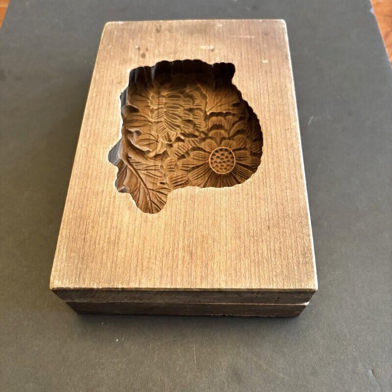 長年、菓子職人さんたちに大事に使われてきた木型達、日本の木型職人さんの彫りは繊細で素晴らしい。