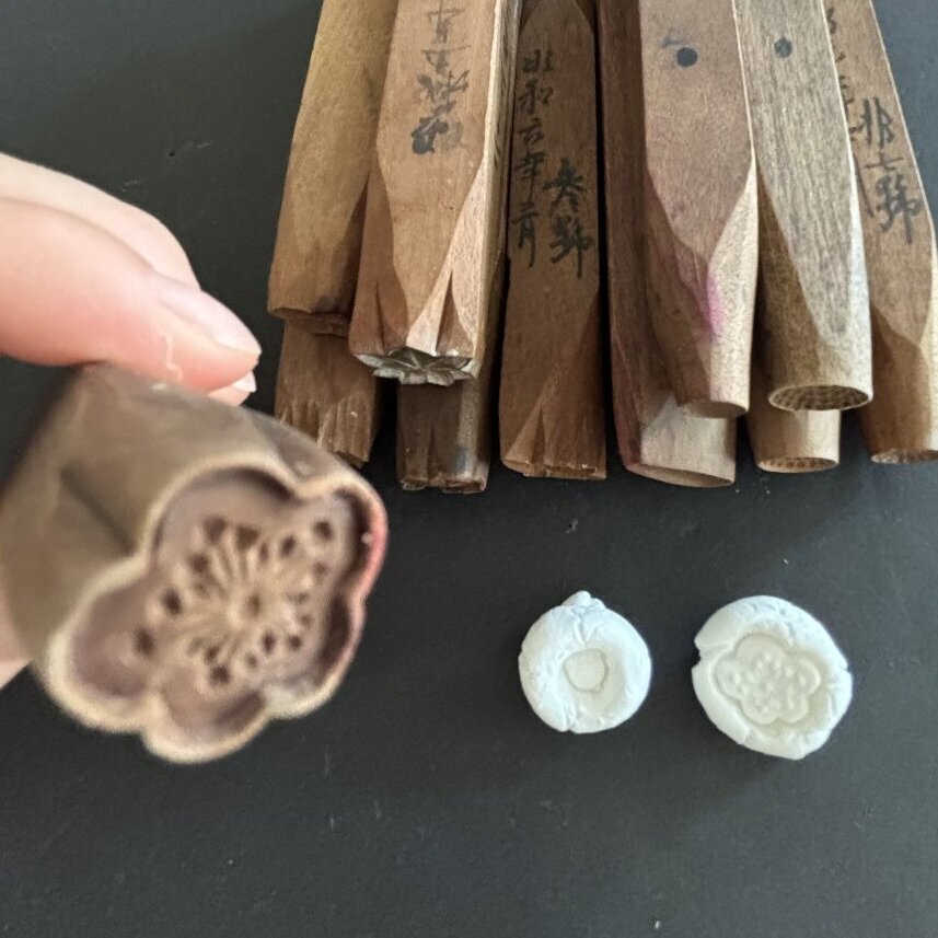 長年、菓子職人さんたちに大事に使われてきた木型達、日本の木型職人さんの彫りは繊細で素晴らしい。