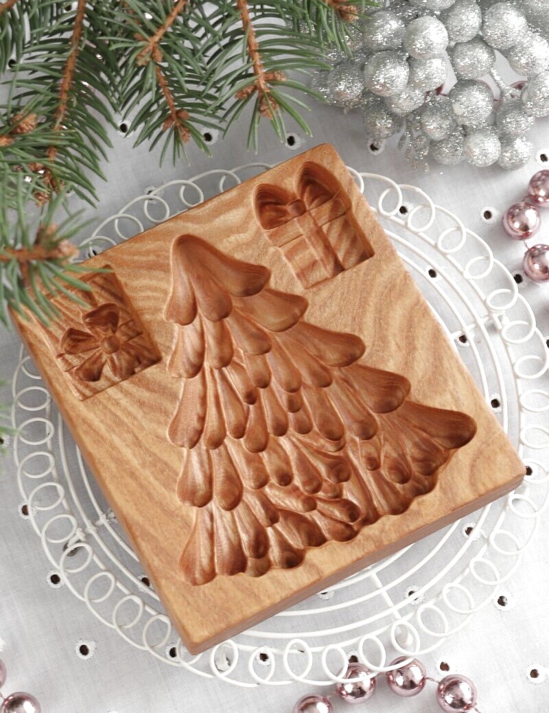 ツリーとプレゼント/wood gingerbread cookie mold [pw433]