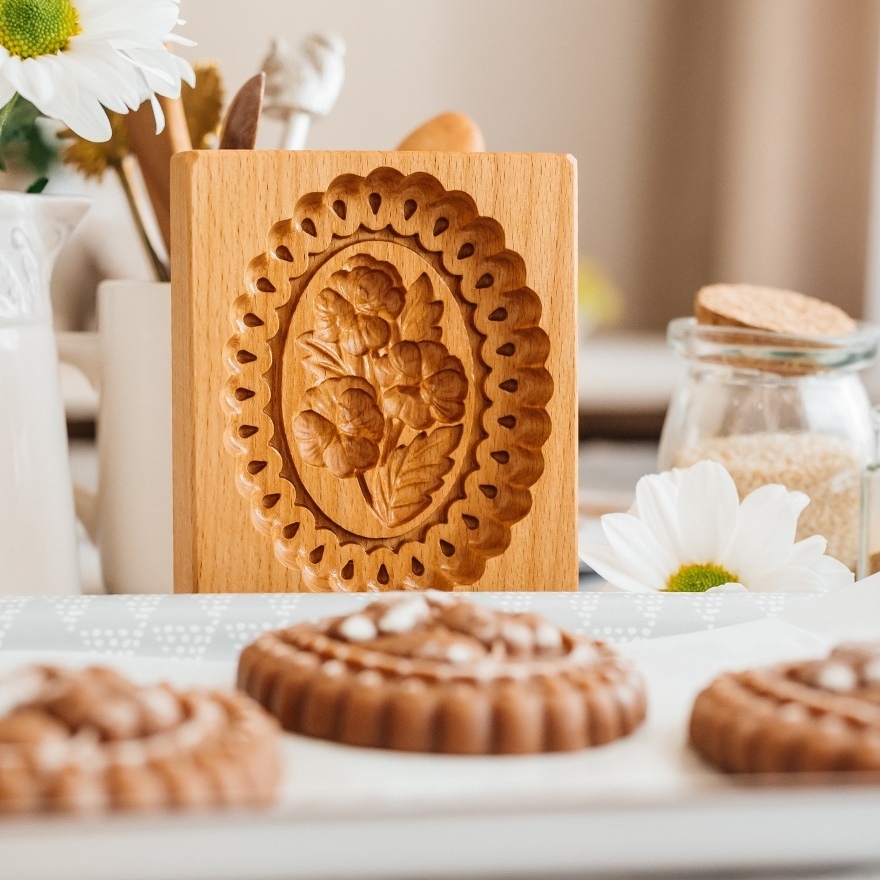 繊細なデザインがとても素敵な木製のクッキー型です。
