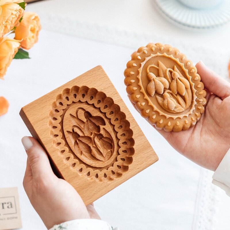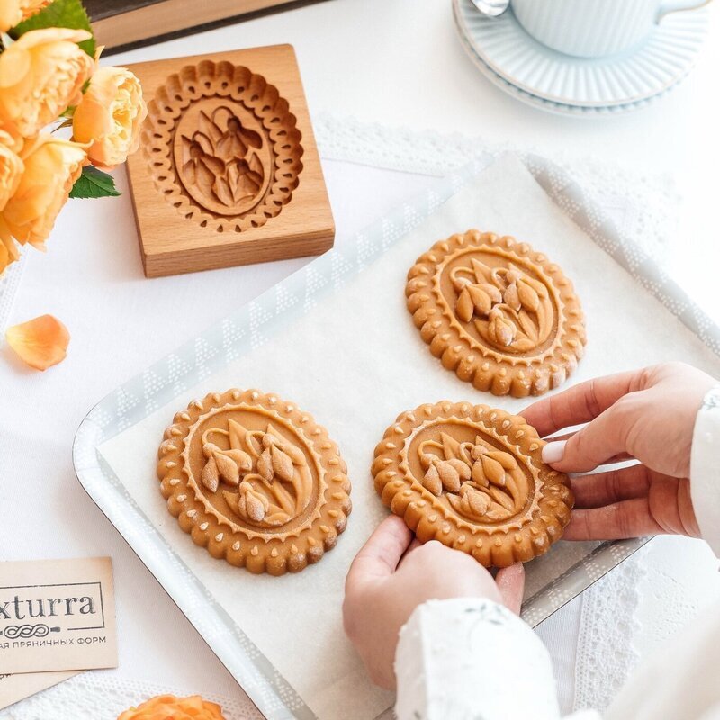 繊細なデザインがとても素敵な木製のクッキー型です。