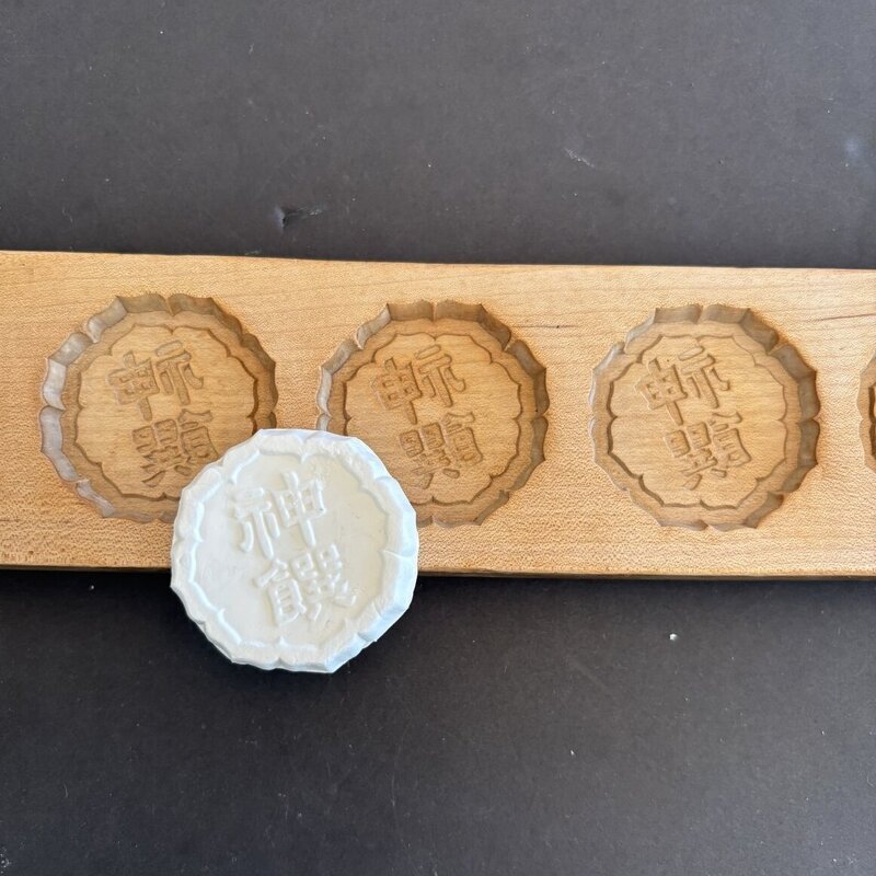 長年、菓子職人さんたちに大事に使われてきた木型達、日本の木型職人さんの彫りは繊細で素晴らしい。