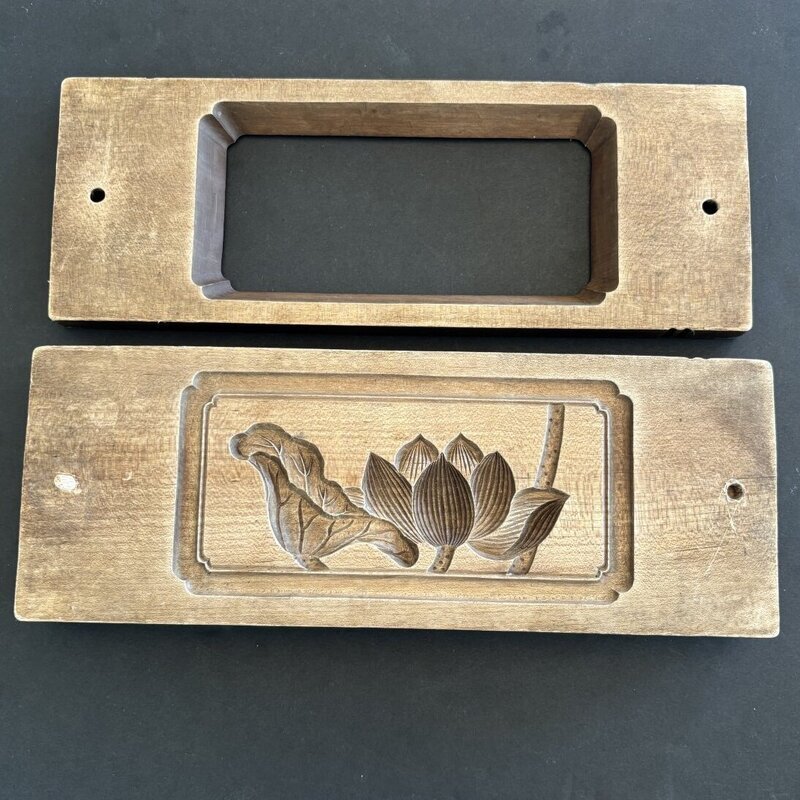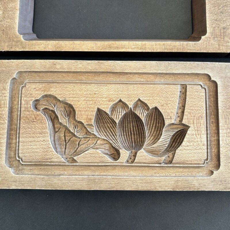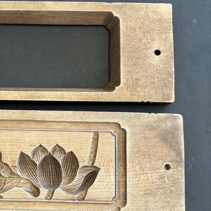 長年、菓子職人さんたちに大事に使われてきた木型達、日本の木型職人さんの彫りは繊細で素晴らしい。