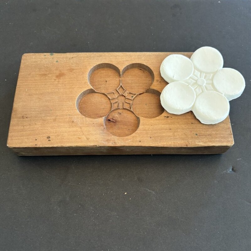 長年、菓子職人さんたちに大事に使われてきた木型達、日本の木型職人さんの彫りは繊細で素晴らしい。