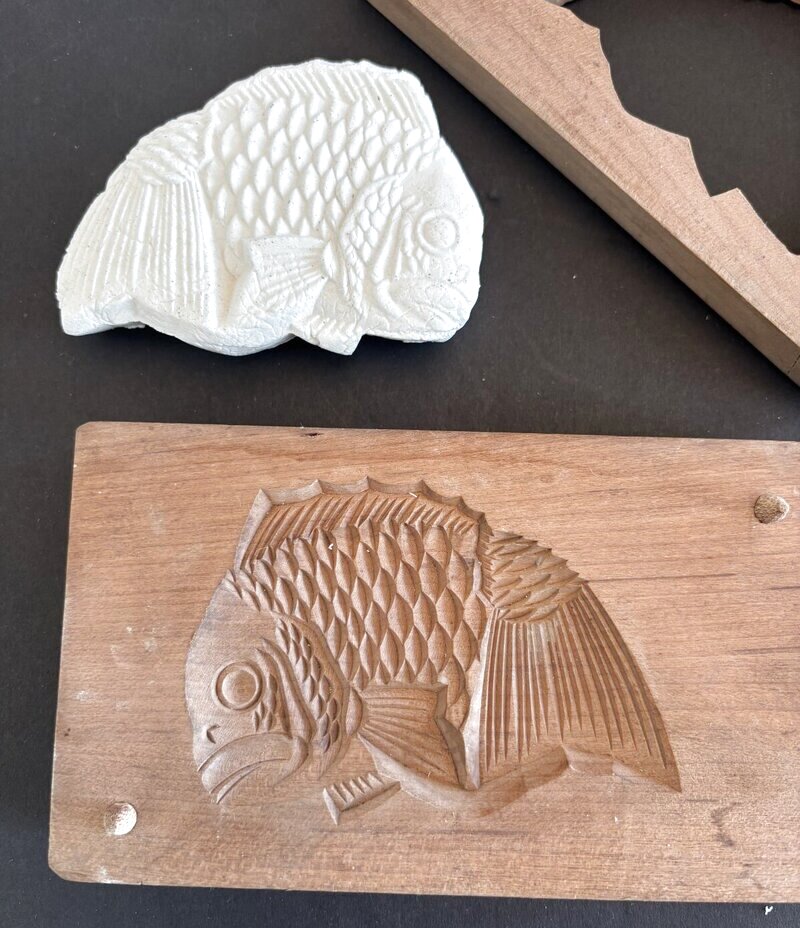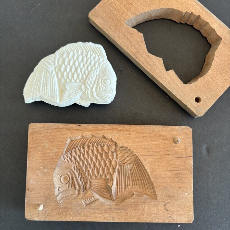 長年、菓子職人さんたちに大事に使われてきた木型達、日本の木型職人さんの彫りは繊細で素晴らしい。
