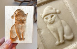 Christmas Kitty / クリスマスキャット+カッター付き*wood cookie mold【送料無料】 [mk11400]