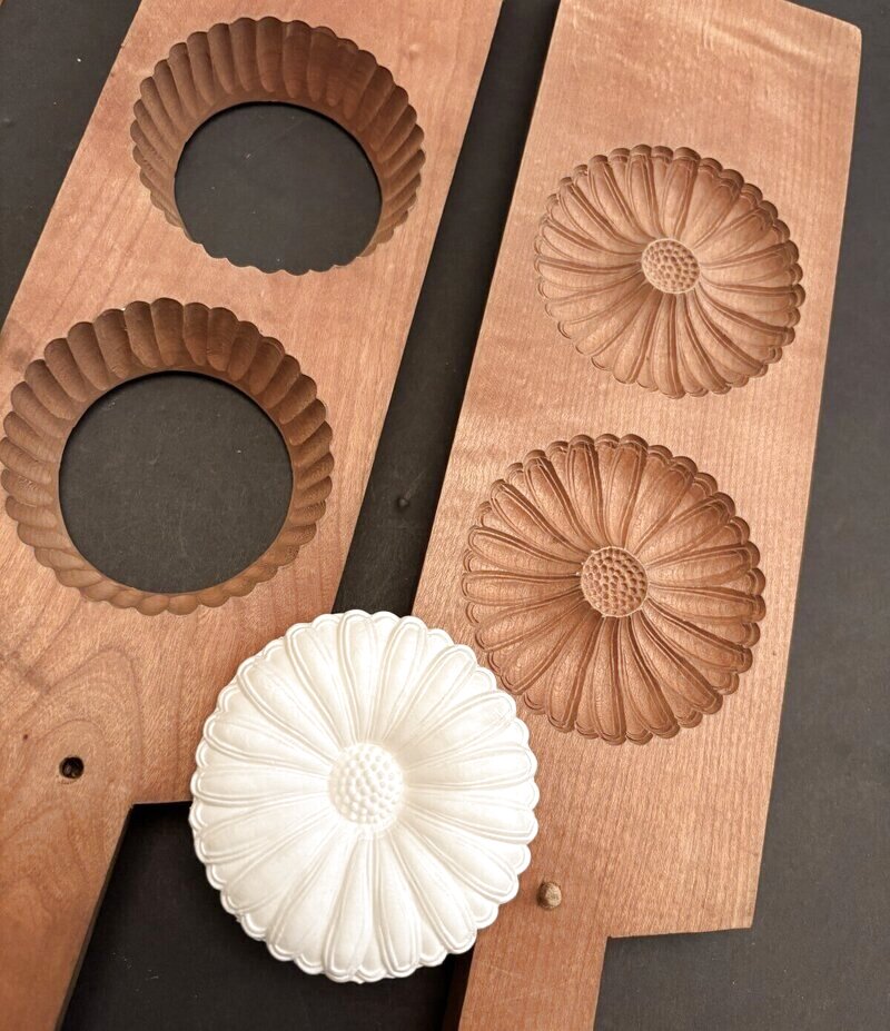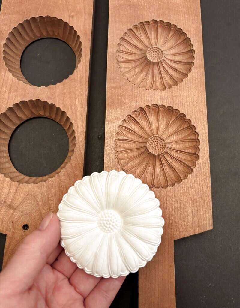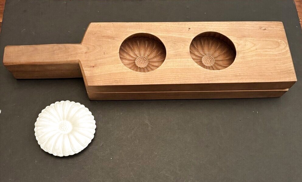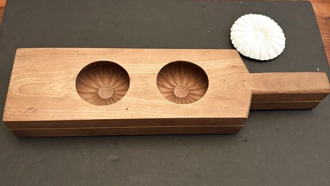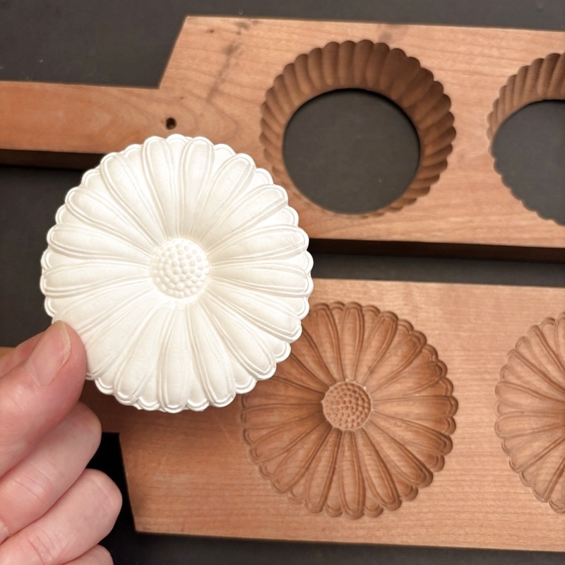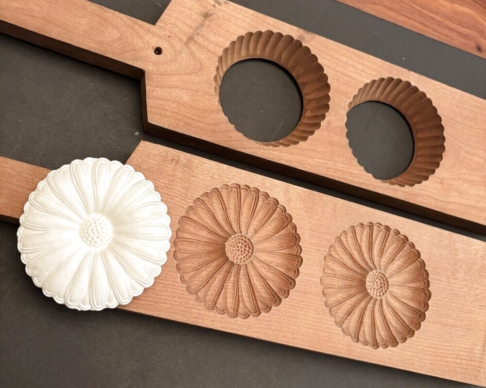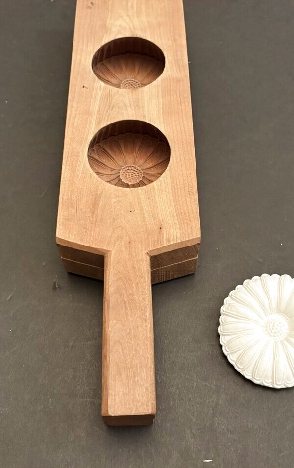 長年、菓子職人さんたちに大事に使われてきた木型達、日本の木型職人さんの彫りは繊細で素晴らしい。