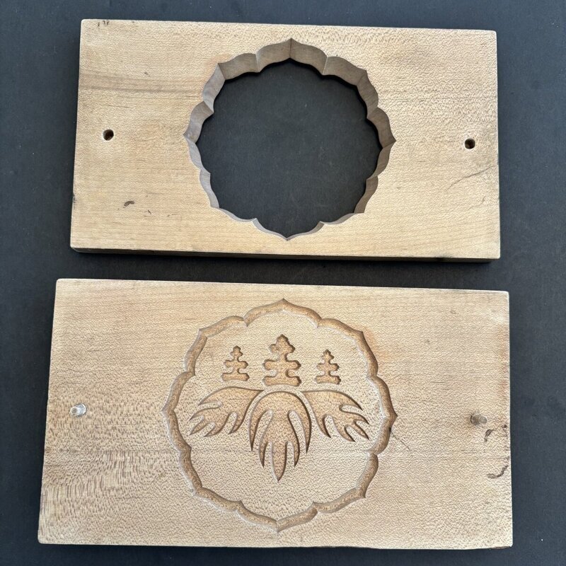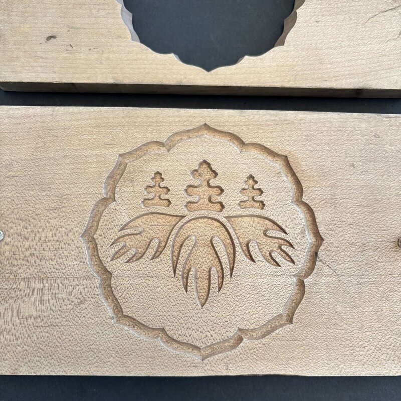 長年、菓子職人さんたちに大事に使われてきた木型達、日本の木型職人さんの彫りは繊細で素晴らしい。