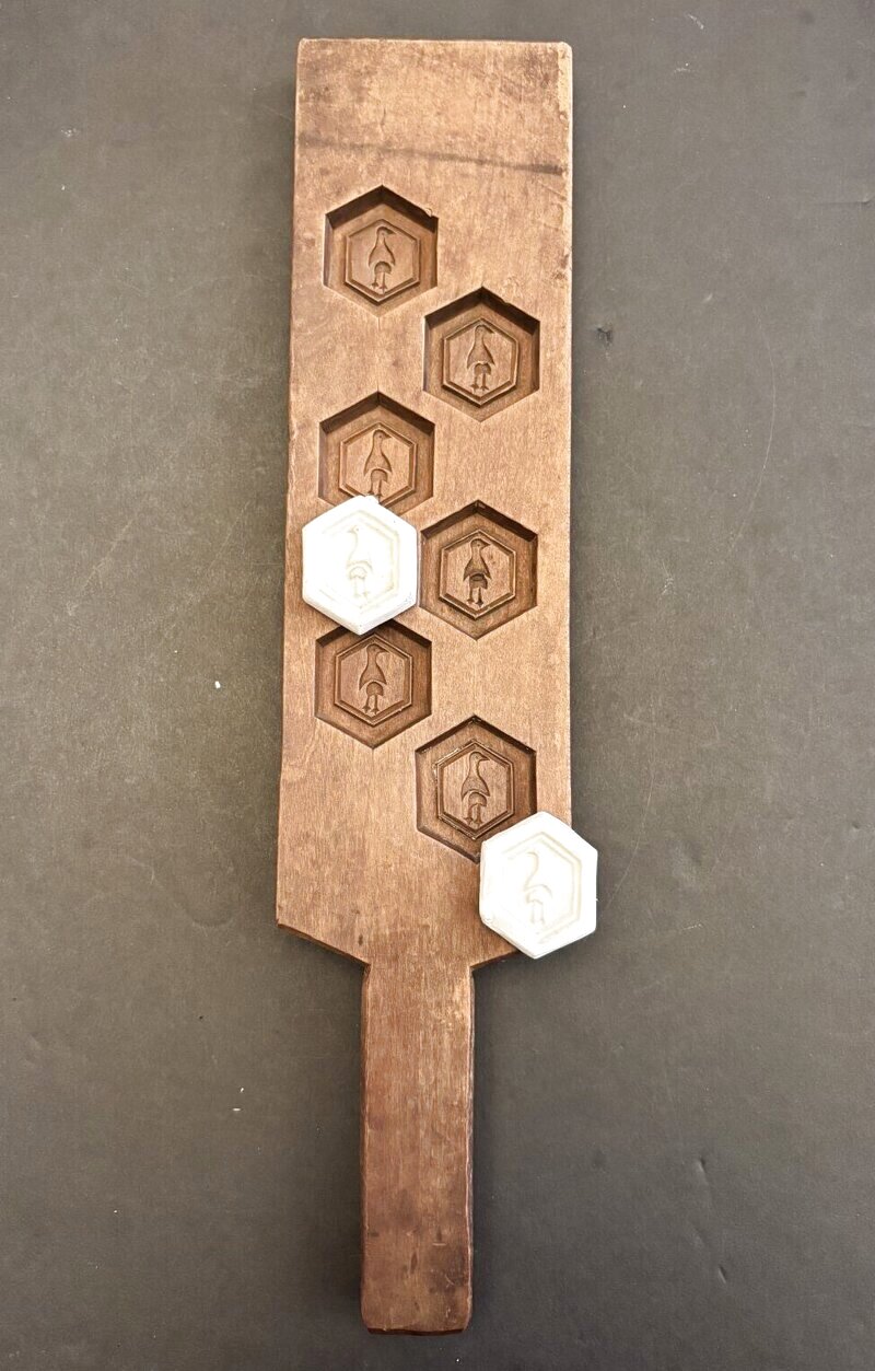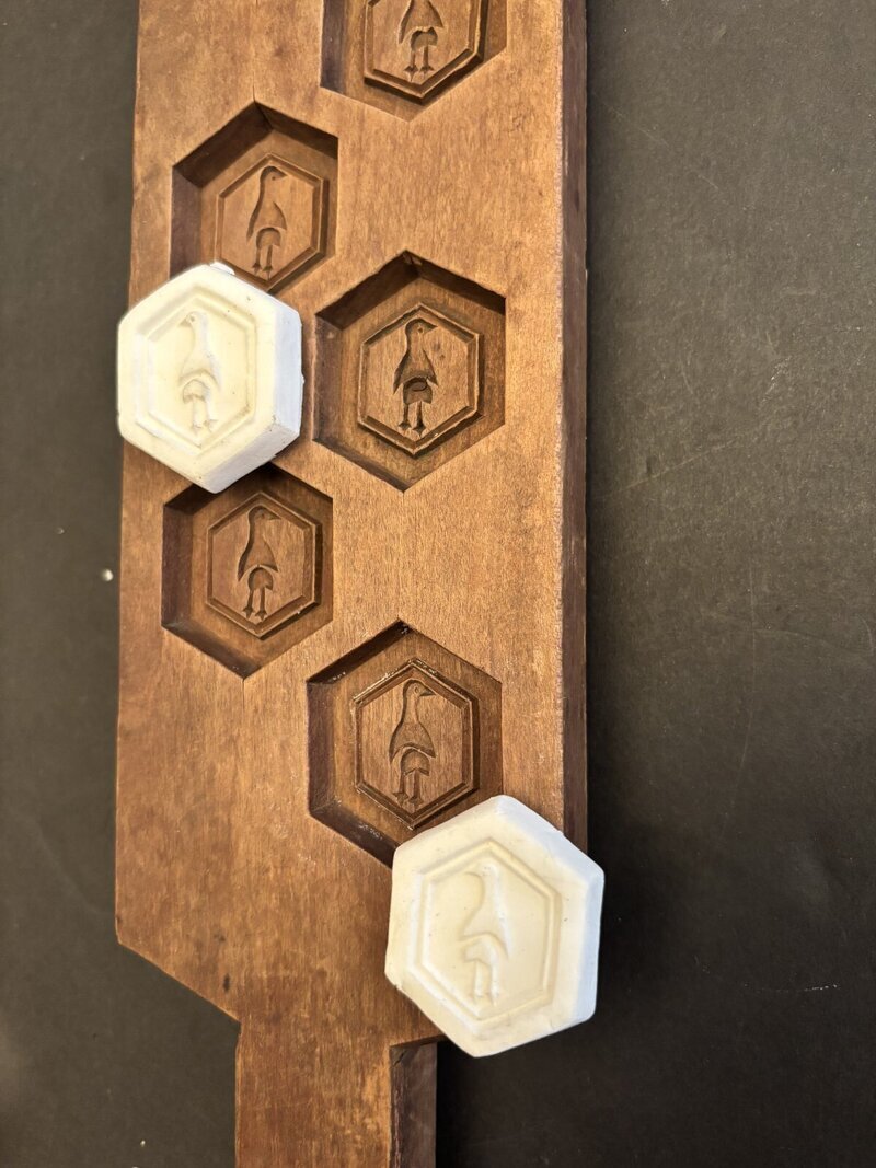 長年、菓子職人さんたちに大事に使われてきた木型達、日本の木型職人さんの彫りは繊細で素晴らしい。