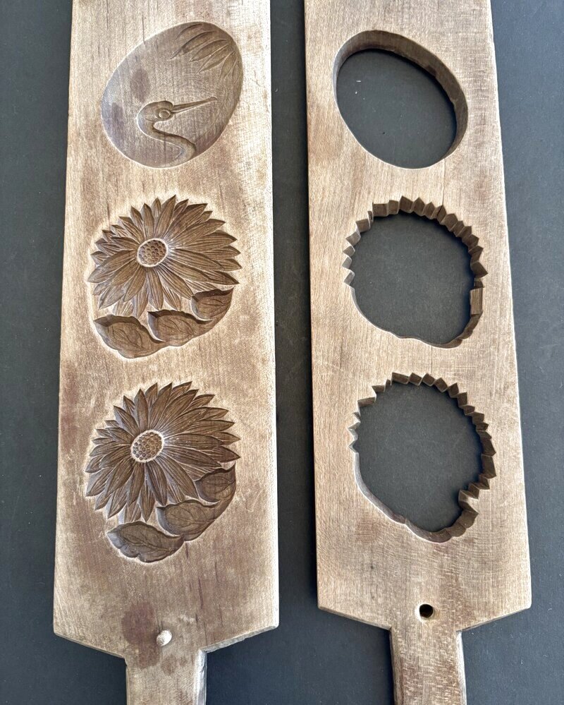 長年、菓子職人さんたちに大事に使われてきた木型達、日本の木型職人さんの彫りは繊細で素晴らしい。