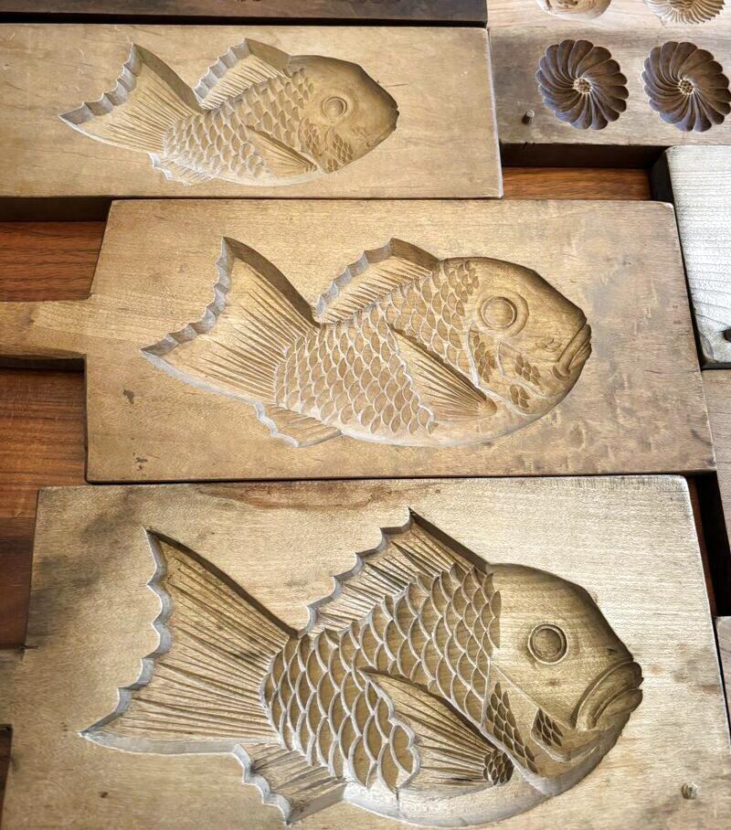 長年、菓子職人さんたちに大事に使われてきた木型達、日本の木型職人さんの彫りは繊細で素晴らしい!!